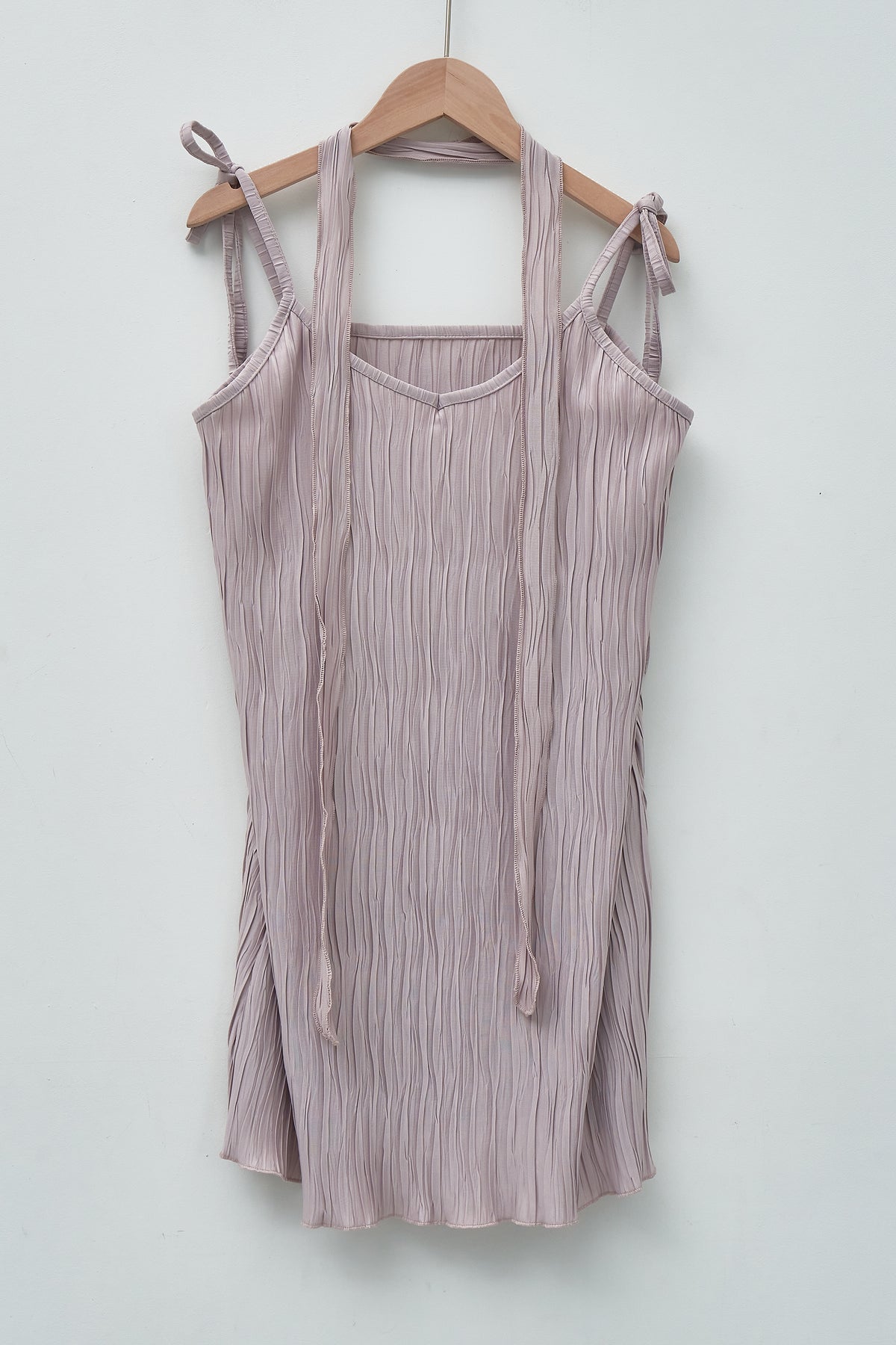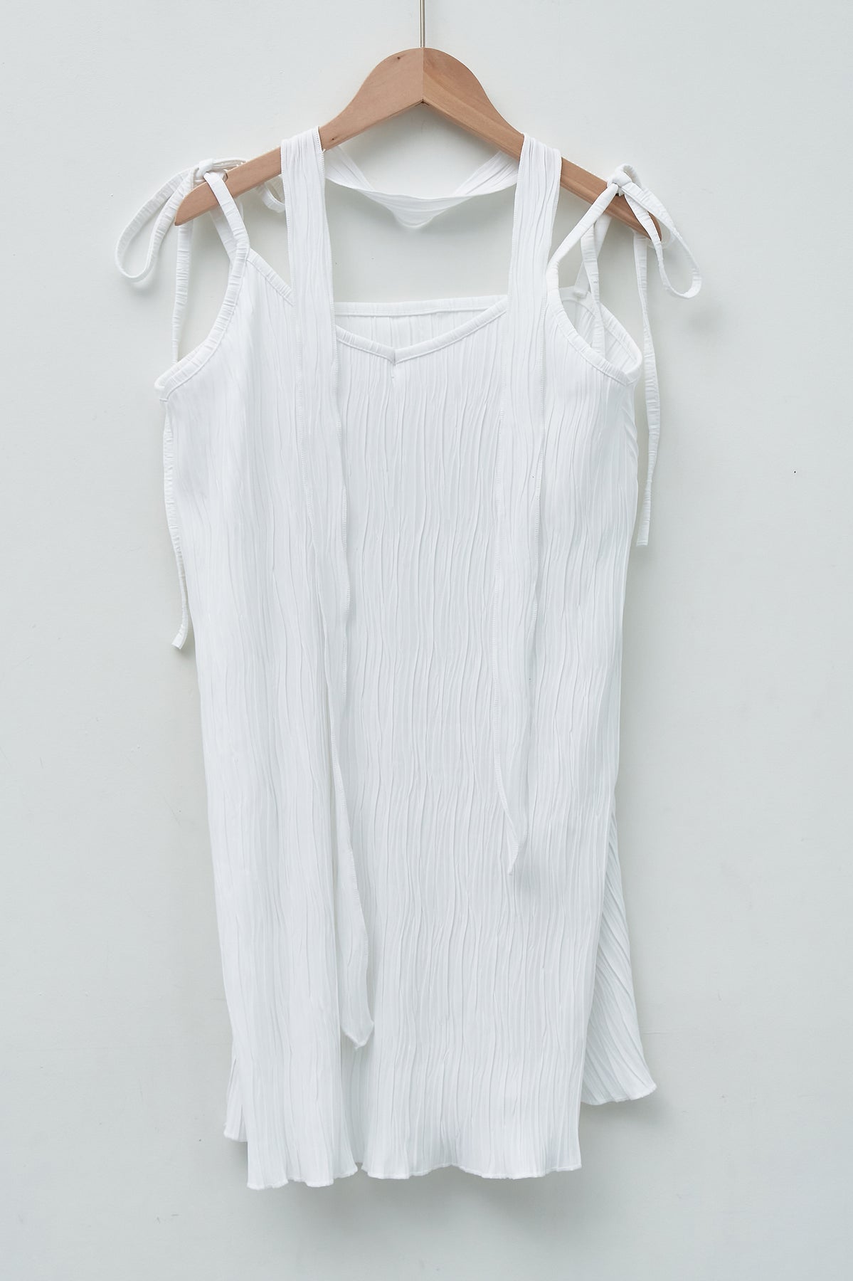 Introducing the Angel Slip Dress - the perfect balance of heavenly softness and feminine beauty. Made with lightweight and flowy plisse fabric, this dress is perfect for any occasion. Complete the look with our versatile scarf (or belt) for added style and versatility.