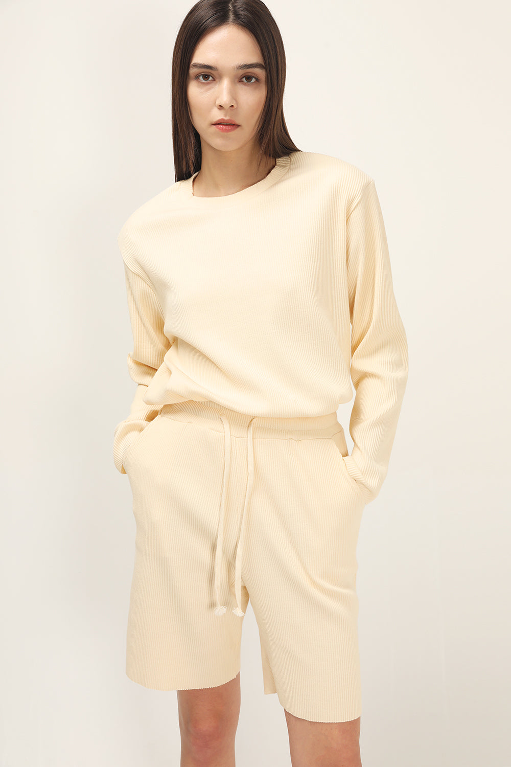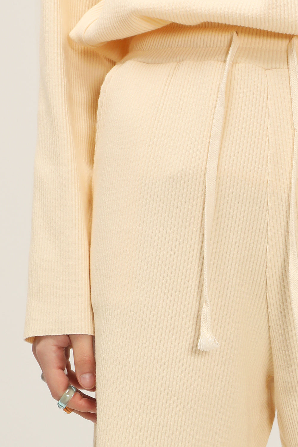 • Featuring a ribbed material all over, an elasticized waist band with a functional drawstring detail, dual slant pockets, and slip on style
