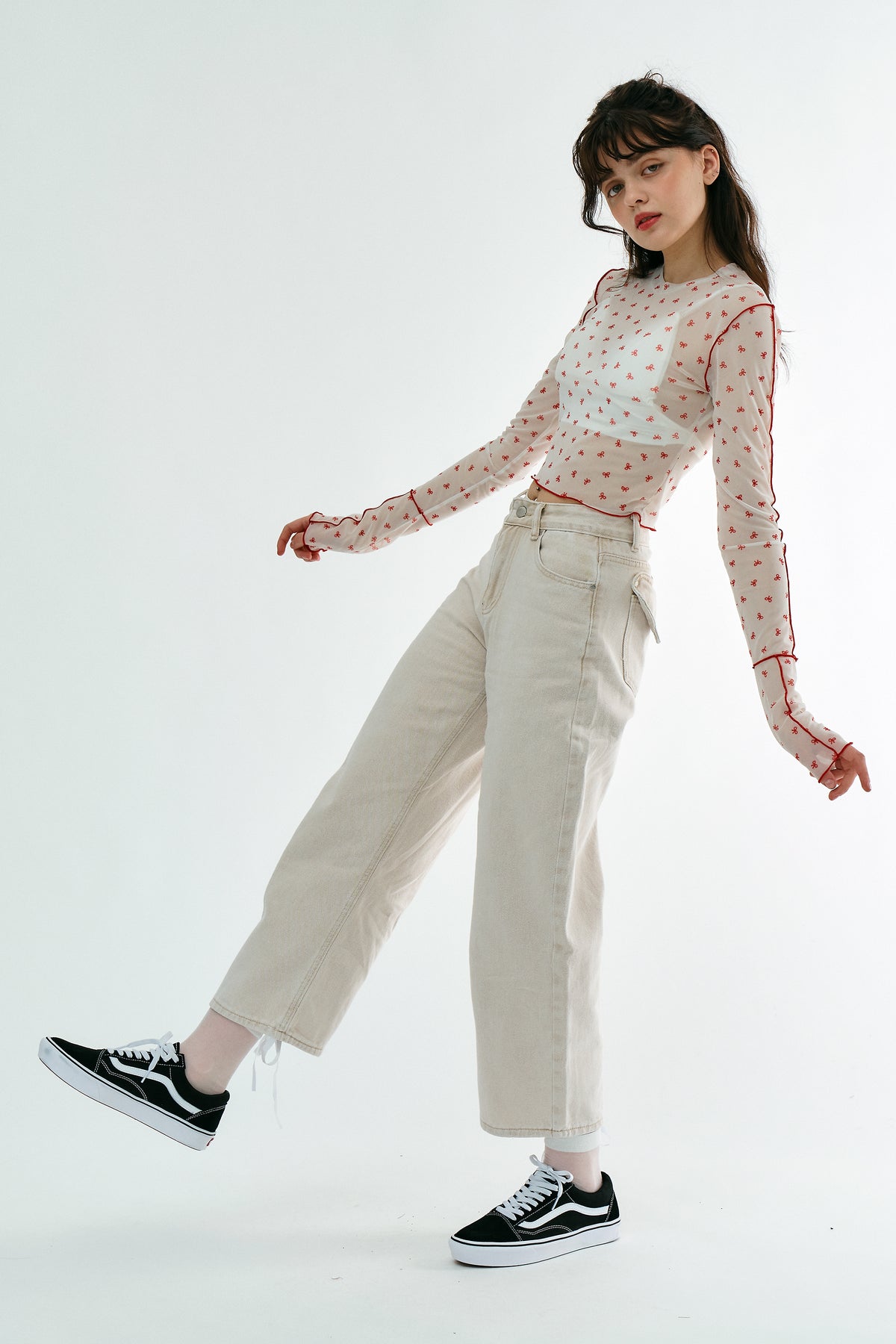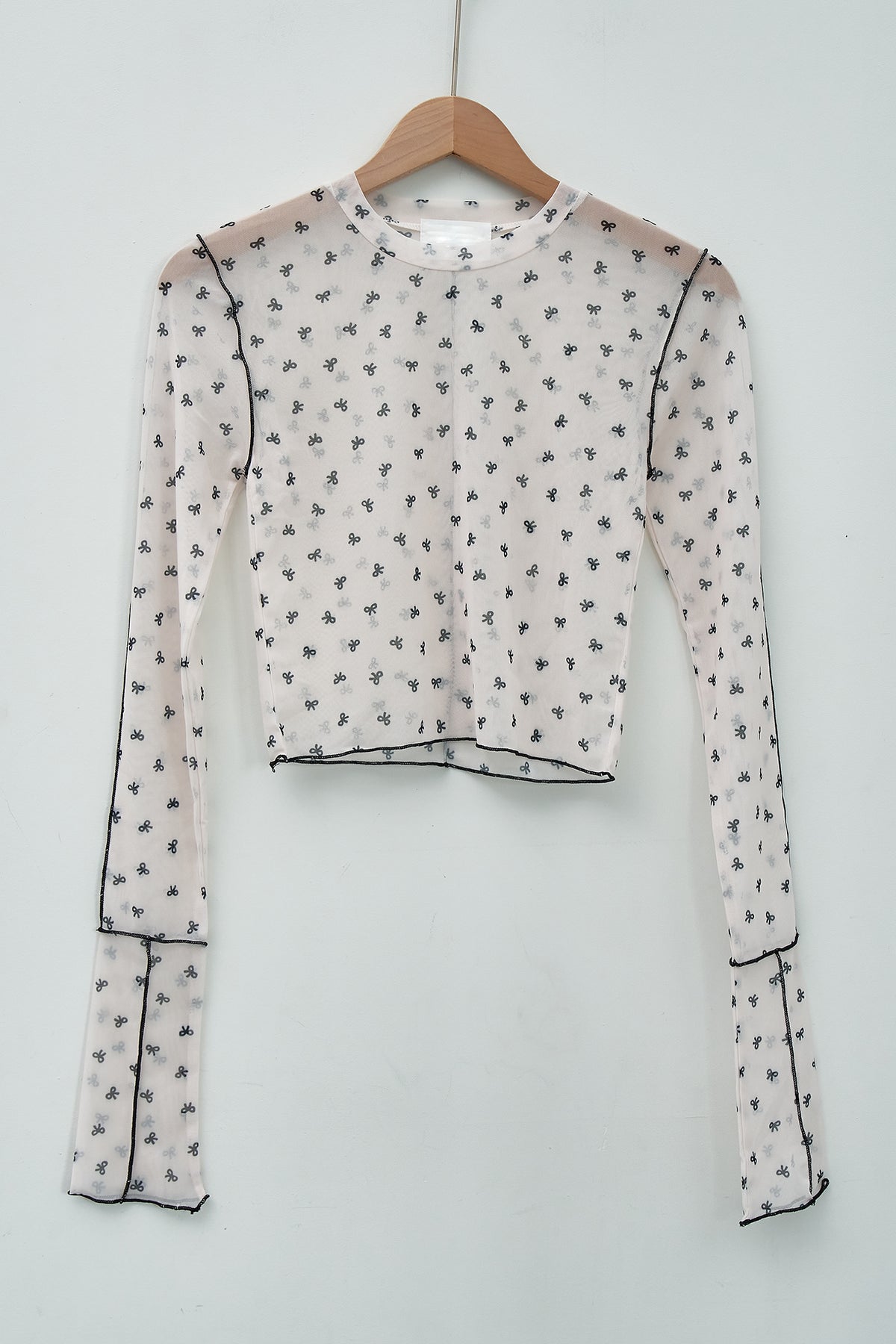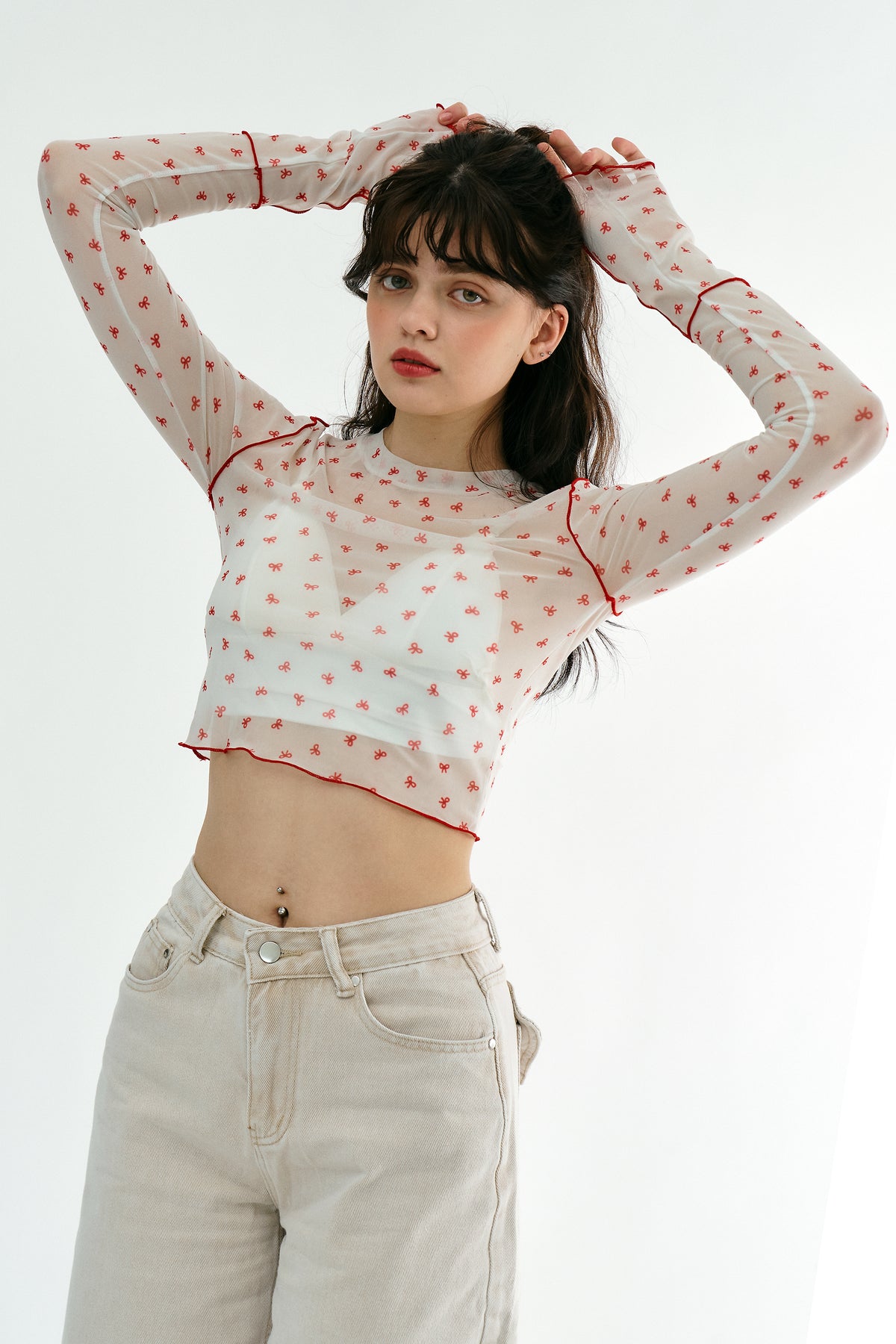 • Spice up your balletcore look with our Avani Bow Printed Mesh Top. The playful bow print adds a touch of whimsy to this cropped top, made with breathable mesh fabric. Perfect for adding some quirk to your wardrobe! (ballet shoes not included)