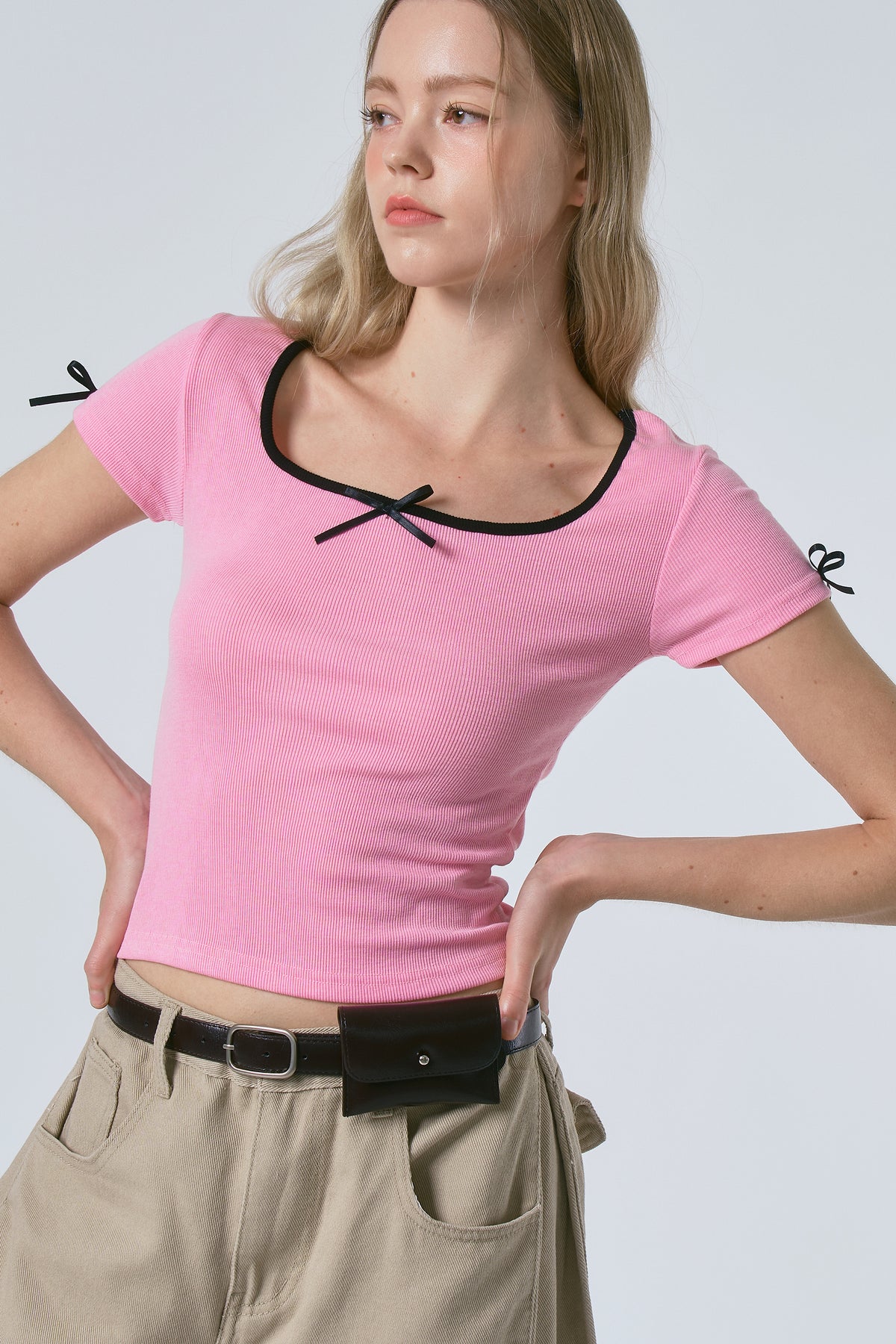 Add a playful touch to your wardrobe with the Billie Petite Bows Top. Featuring charming bows and a flattering square neckline, this top stands out with its contrasting neck and sleeves for a fun, eye-catching look. Perfect for adding a bit of whimsy to any outfit!