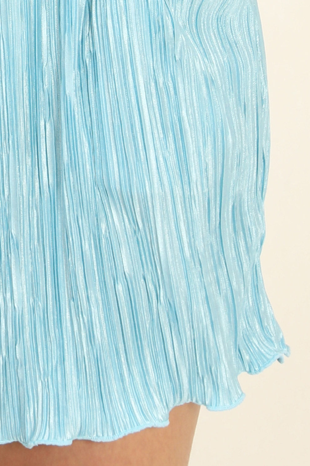 • This shorts feature a well-stretchy crinkled pleated material all over, a lettuce hem detail, an elasticized waistband, and slip on style