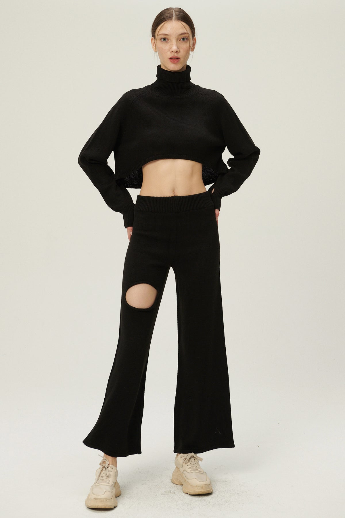 Mia Cropped Turtleneck Sweater with Thumbhole